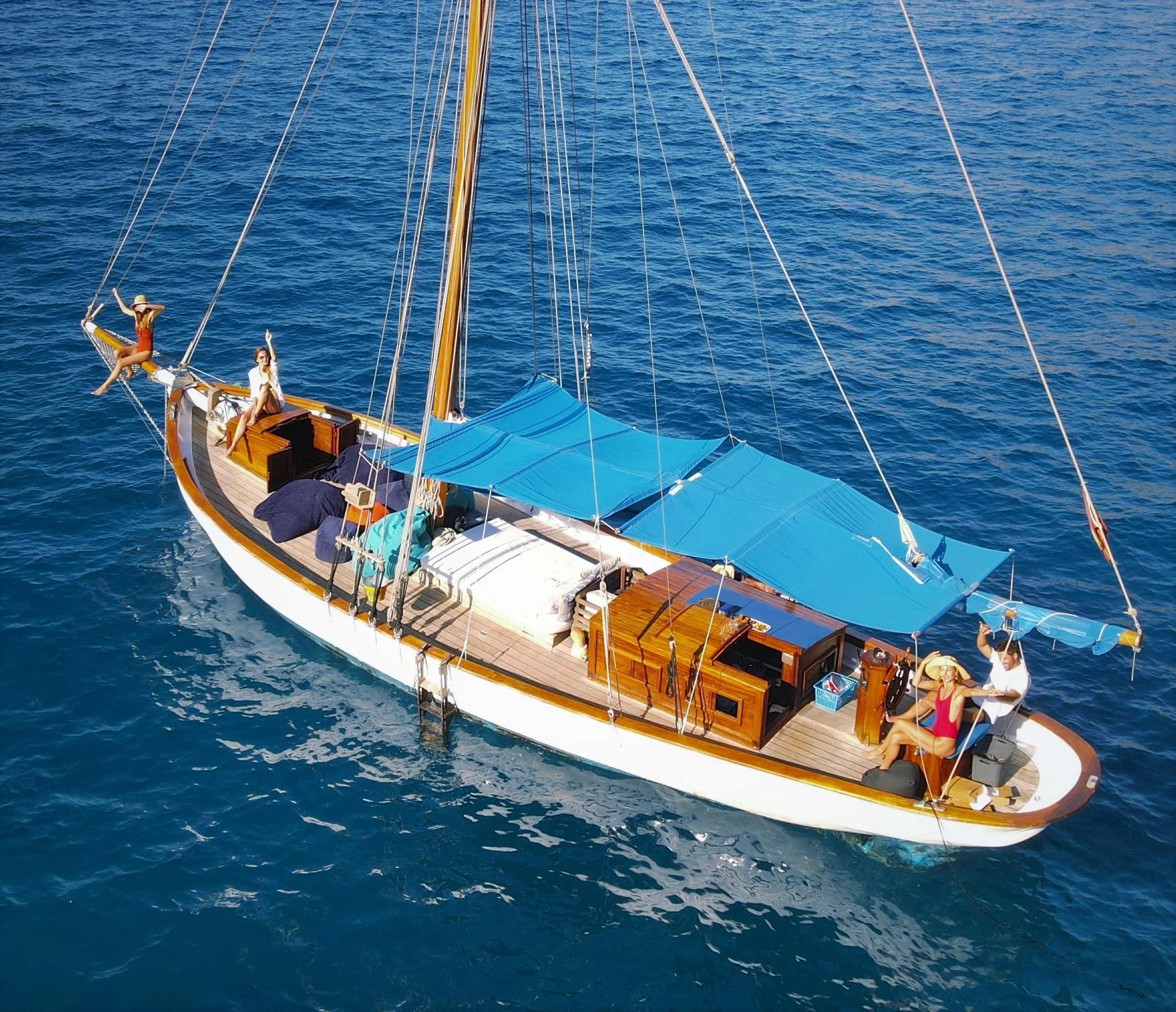 It was moored half-submerged in the San Antonio Bay, when in the late 1990s, Jennifer Linley Taylor and her ex-husband bought the San Jaime from Pedro Costas. She was then lovingly restored— first by Vincente Corte in 2001, and again in 2021 by Francis Mari Cabrales. In 2013, Jen and her Fiancé, Wes Henderson, became sole owners of the San Jaime.